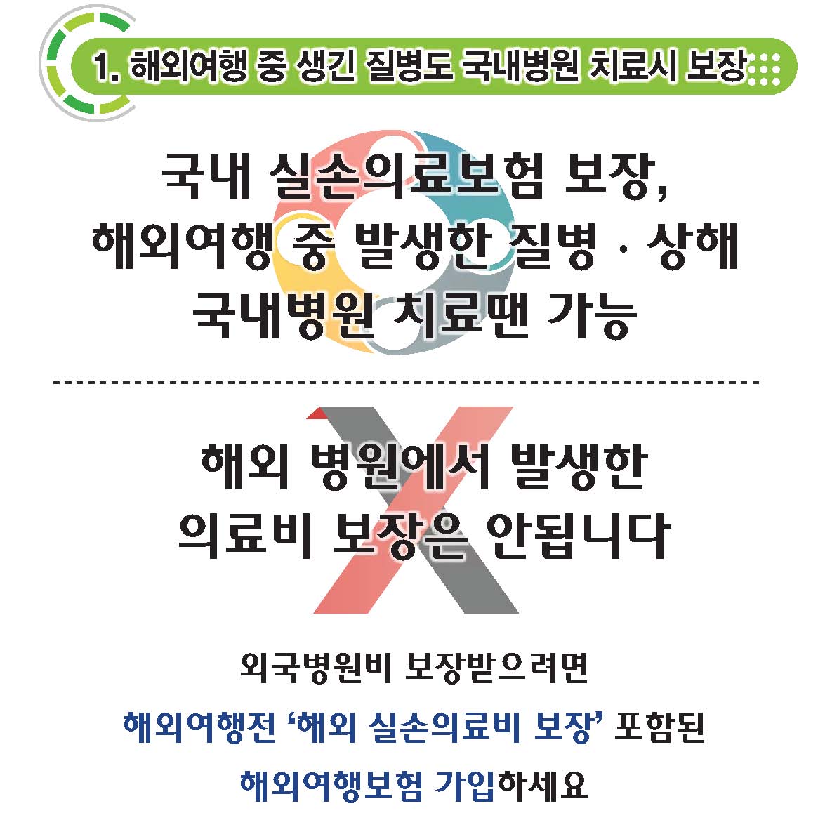 ① 해외 여행 중 생긴 질병도 국내 병원에서 치료시 보장