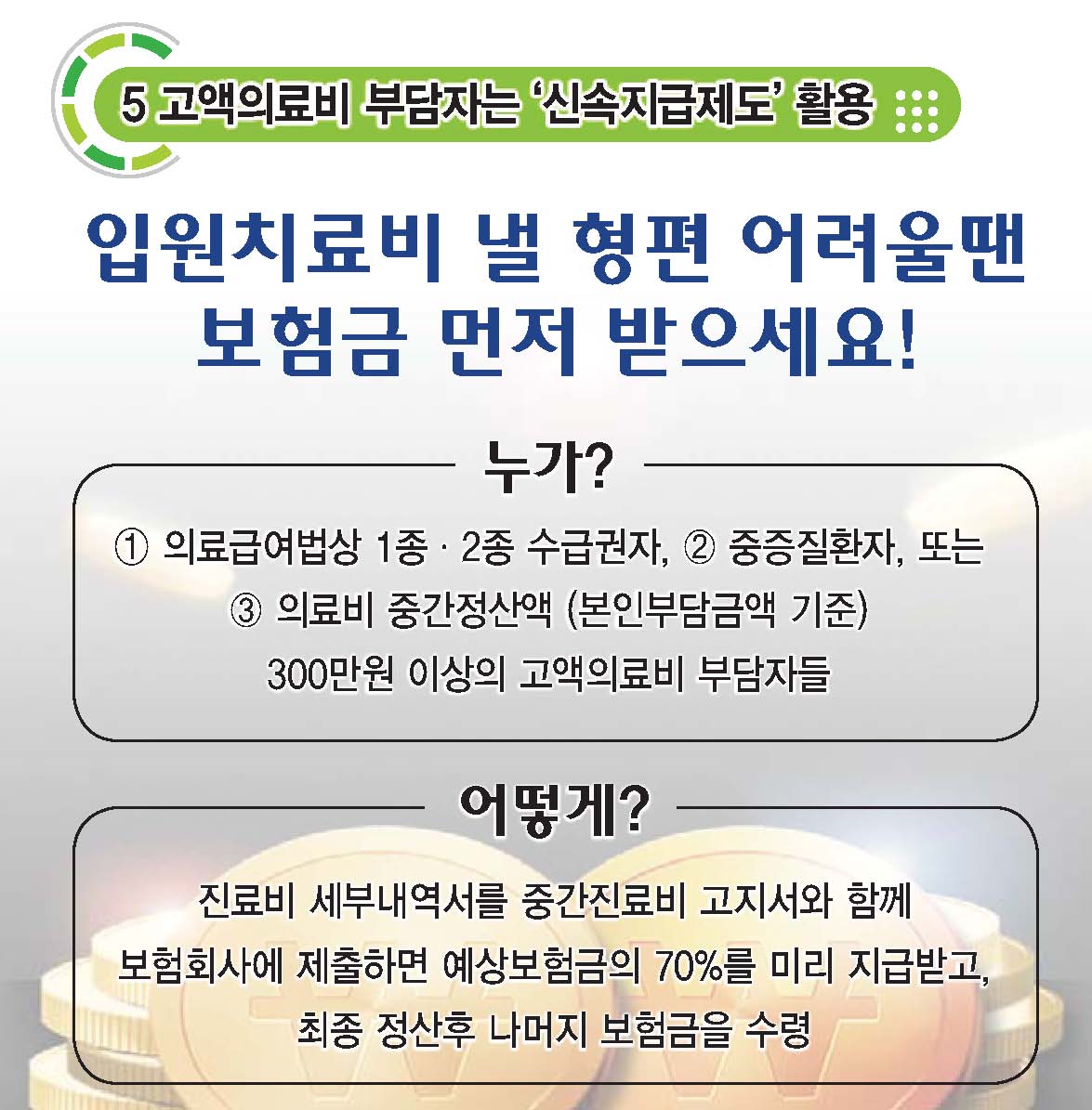 ⑤ 고액의료비 부담자는 신속지급제도 활용