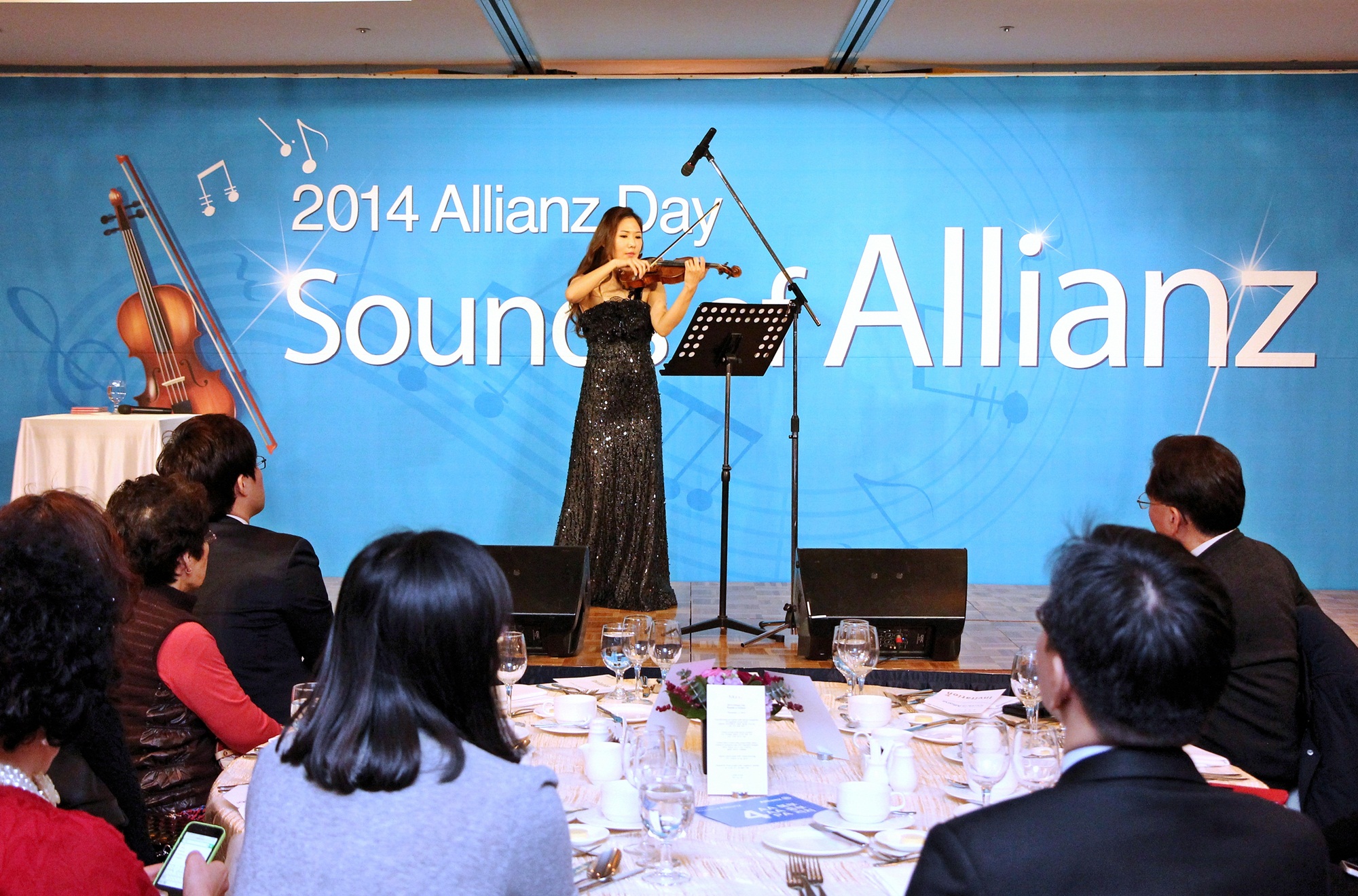 ‘Sounds of Allianz’는 여러 가지 ‘소리(Sound)'를 콘셉트로 고객들에게 고급 와인을 곁들인 만찬과 함께 클래식 공연을 제공하는 행사다. 고객들은 먼저 알리안츠 소개 영상과 이명재 사장의 인사말을 통해 ‘알리안츠의 소리’를 들었다. 이어 바이올리니스트 겸 작가인 노엘라 씨의 아름다운 연주로 ‘감사의 소리’를, 알리안츠 그룹 소유 와이너리에서 생산된 고급 와인을 시음하며 ‘와인의 소리’를 들었다. 이후 만찬을 즐기며 추첨을 통해 다양한 선물을 받을 수 있는 ‘나눔의 소리’ 시간이 마련됐다.