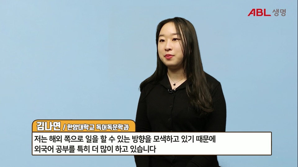 그룹 인터뷰 형식으로 구성된 이번 영상에는 ‘지금 가장 큰 고민거리, 더 나은 미래를 위한 나만의 보험, 10년 후 미래의 나에게 하고 싶은 말’ 등의 물음에 답하는 졸업을 앞두고 취업을 준비하는 대학생들의 진솔한 생각과 이야기가 담겼다.