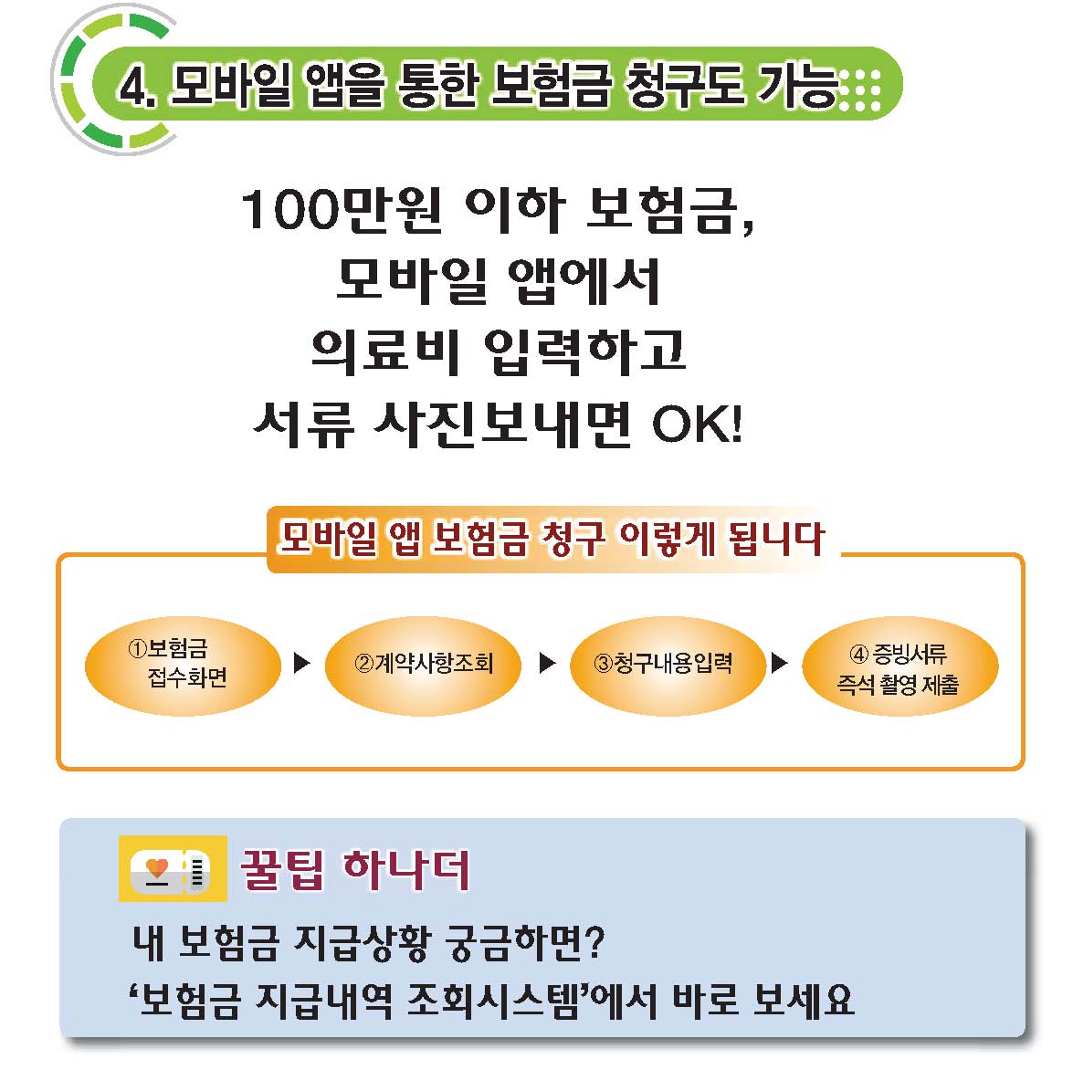 ④ 모바일 앱을 통한 보험금 청구도 가능