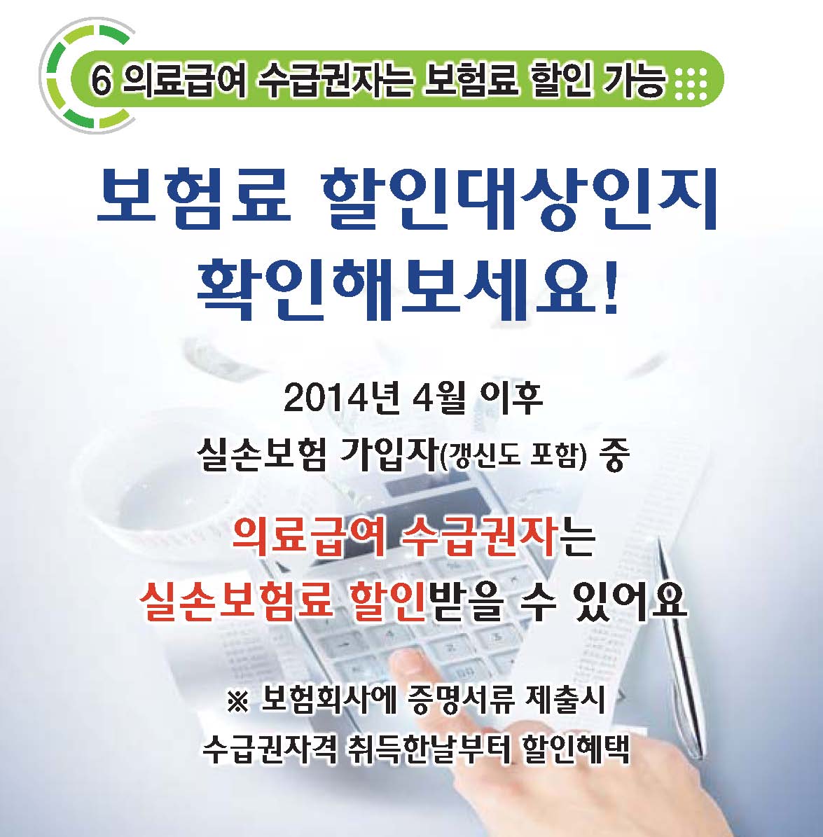 ⑥ 의료급여 수급권자는 보험료 할인 가능